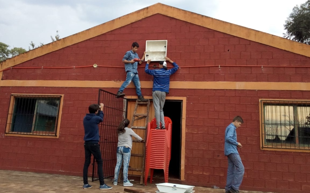 Alumnos de la Escuela Provincial de Educación Técnica (EPET) 39 de esta ciudad hicieron una nueva instalación eléctrica para un salón comunitario que pertenece a la Escuela primaria 485 y que hace tiempo estaba a oscuras. Pusieron manos a la obra y en sólo dos días hicieron los arreglos que necesitaba la comunidad.