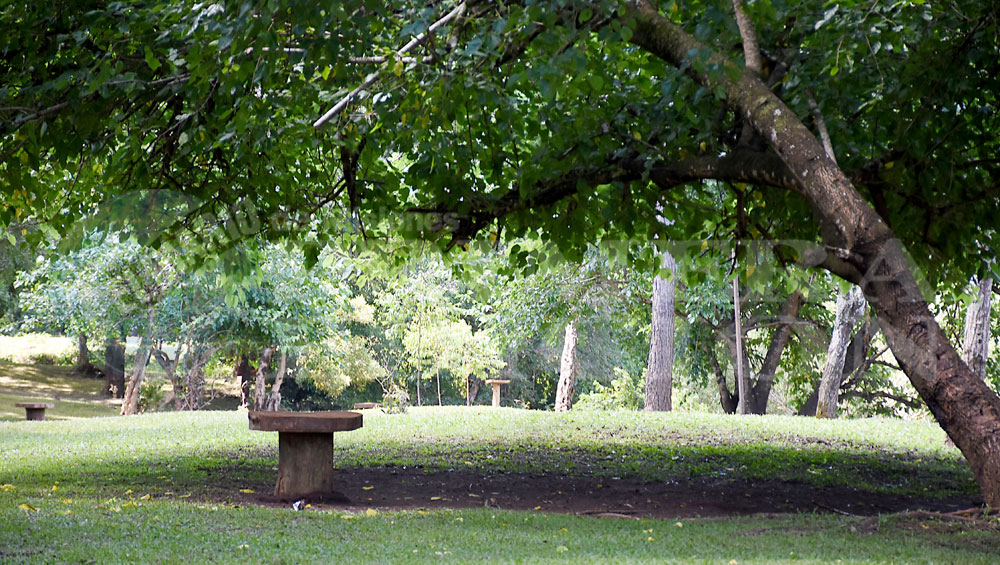 El portal del camping lo dice todo. Árboles, mesas dispuestas alrededor a los lados del arroyo. Todo para disfrutar de un buen momento bajo la tupida fronda.