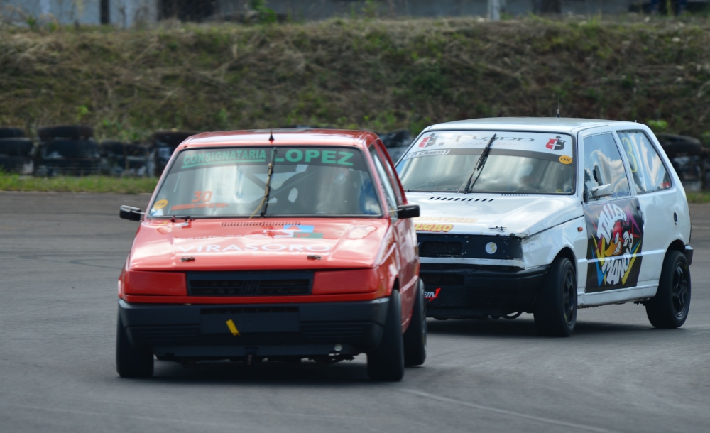 La primera competencia del día tuvo al Turismo Pista Clase 1 que, con la grilla invertida, vio a Nicolás Vivero y Leticia Ponce de León largando desde la primera fila. Vivero encabezó el pelotón desde las primeras vueltas, mientras que la dama del automovilismo aguantaba a Gustavo Zarza. En ese inicio, el paraguayo Alan Aquino volcó con su Fiat Duna, luego de una serie de roces, sin consecuencias físicas.