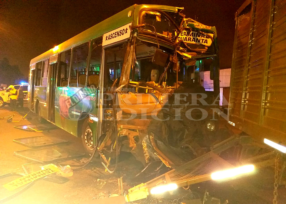 El camión llevaba un acoplado contra el cual impactó el colectivo, cuyo frente quedó totalmente destrozado como puede apreciarse en las imágenes.