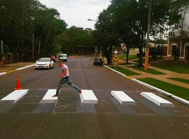 Según explicó ayer su autor a través de la red social Facebook, las sendas 3D causan una ilusión óptica que obliga al conductor a detenerse o reducir la velocidad. Son utilizadas en diversas partes del mundo con muy buenos resultados.