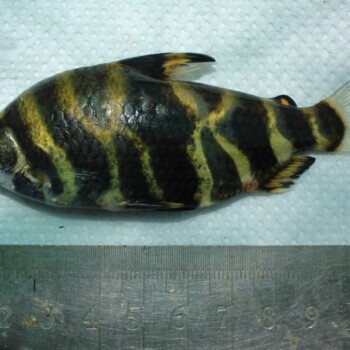 El borde del opérculo presenta dos espinas planas. Las escamas del flanco son ctenoides (rugosas al tacto) y se extienden sobre la aleta caudal.