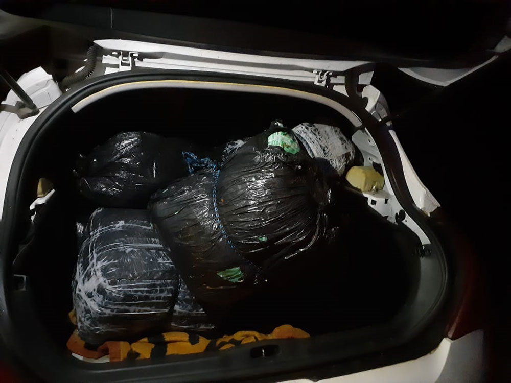Dentro del auto había grandes bultos que se suponía podían contener algún tipo de estupefaciente. Debido a ello, y ante la presencia de testigos, se revisaron algunos de los paquetes que contenían una sustancia similar a la marihuana.