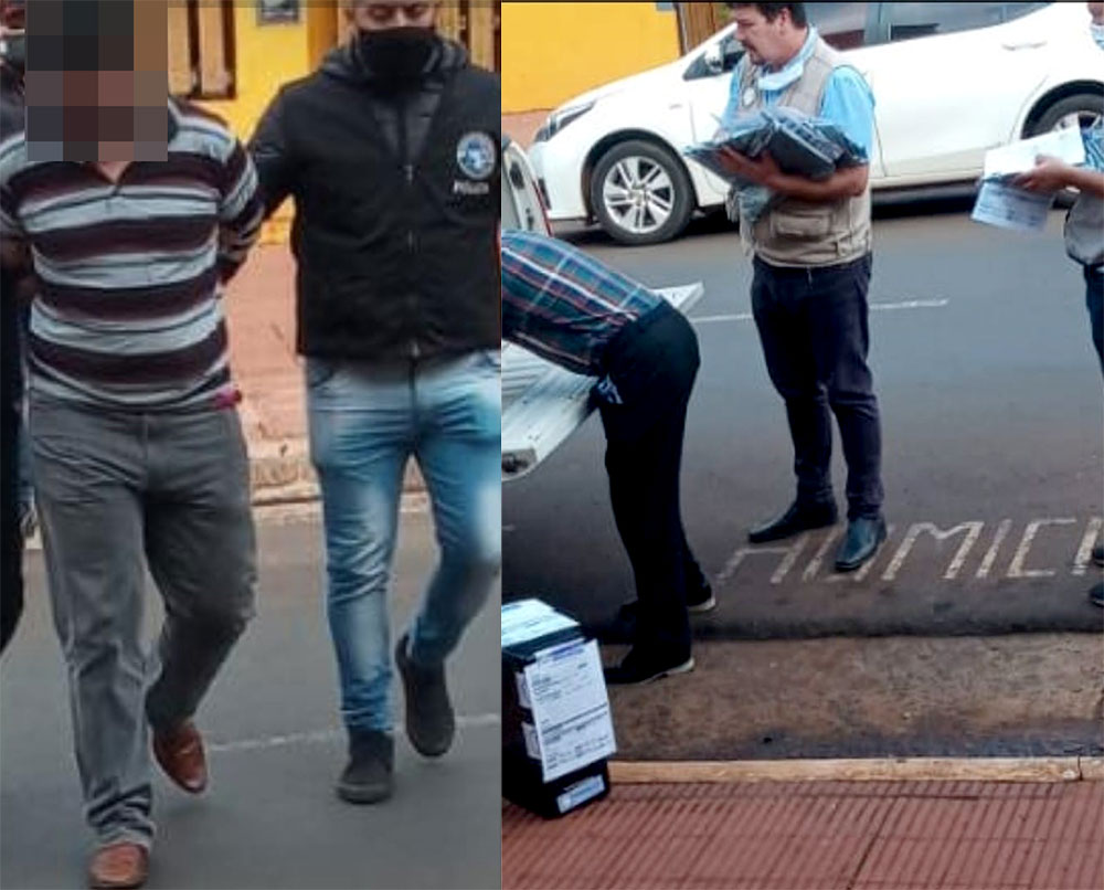 En el caso misionero, el procedimiento se desplegó frente a la manzana de las dependencias de la Jefatura de Policía y finalizó pocos minutos antes de las 15 con el traslado de computadoras, celulares y netbooks, que fueron secuestradas con la aprehensión del profesional de la construcción.