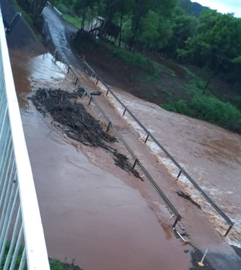 El puente provisorio sobre el arroyo Pindaytí, en el trazado de la ruta provincial 2 (costera), que hace ya una semana permanece cerrado al tránsito a raíz de las últimas lluvias, aún no pudo ser revisado y reparado debido a que la cota del río Uruguay todavía sobrepasa la altura necesaria para ello.
