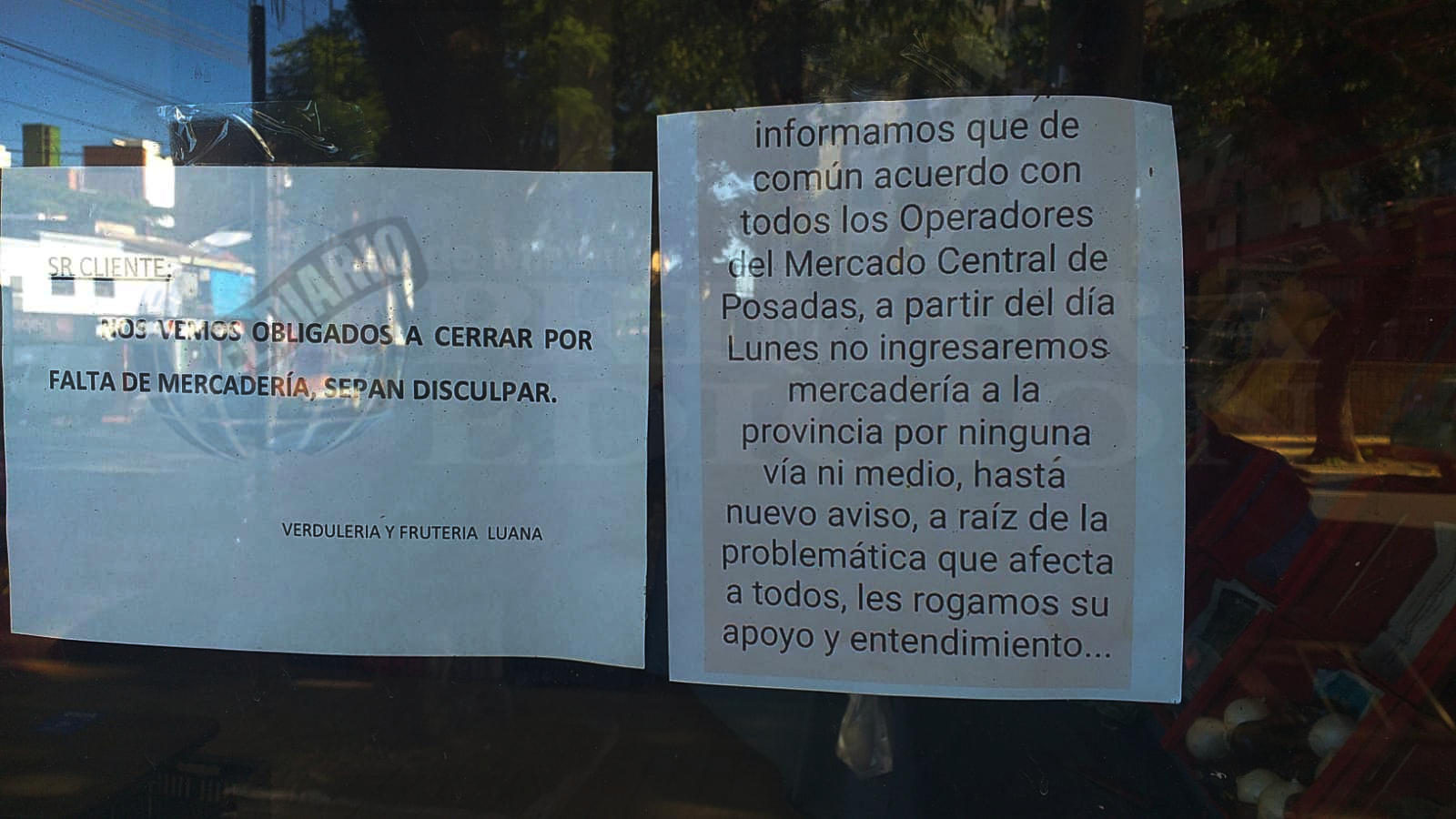Asimismo, en las puertas de la verdulería y frutería “Luana” también se observa otro cartel, en una especie de solidaridad con los operarios que no encuentran respuestas de las autoridades. “Informamos que de común acuerdo con operadores del Mercado Central, a partir del lunes no ingresaremos más mercadería a la provincia por ninguna vía ni medio hasta nuevo aviso, a raíz de la problemática que afecta a todos, les rogamos su apoyo y entendimiento”, cierra el texto.