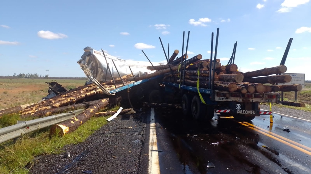 Un siniestro vial que involucró a dos camiones se cobró la vida de dos personas . Según se informó, el hecho ocurrió este viernes sobre la ruta nacional Nº14 en cercanías a la localidad correntina de Santo Tomé cuando por causas que se tratan de establecer en la zona denominada curva del Cuay Grandecolisionaron un camión que transportaba postes de madera y un camión cisterna que trasladaba combustible.