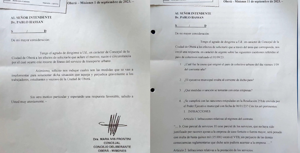 La edil contó que “el 1 de septiembre realizaron un paro, sorpresivo para la gente y de pronto, las personas querían ir al escuela, al trabajo y no tenían servicio hasta las dos de la tarde. Ese mismo día presenté una nota al Ejecutivo municipal para que me explique cuál fue el motivo del paro de colectivos y cuáles va a ser las medidas de sanción a la empresa. No obtuve ninguna respuesta”. Seguidamente, luego de unos días, junto al concejal Gazzo “como Bloque, hicimos nuevamente una nota al Ejecutivo municipal pero complementamos con un pedido de informe para que ingrese también al Concejo Deliberante”, adicionó.