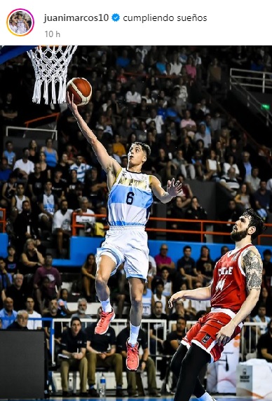 Jueves 22 de febrero de 2024. La fecha quedará guarda para siempre en la memoria de Juani Marcos (23), quien minutos antes de las 22 cumplió su sueño y debutó en la Selección argentina de básquetbol en la victoria sobre Chile por 90-78, por la primera ventana clasificatoria a la Americup 2025.