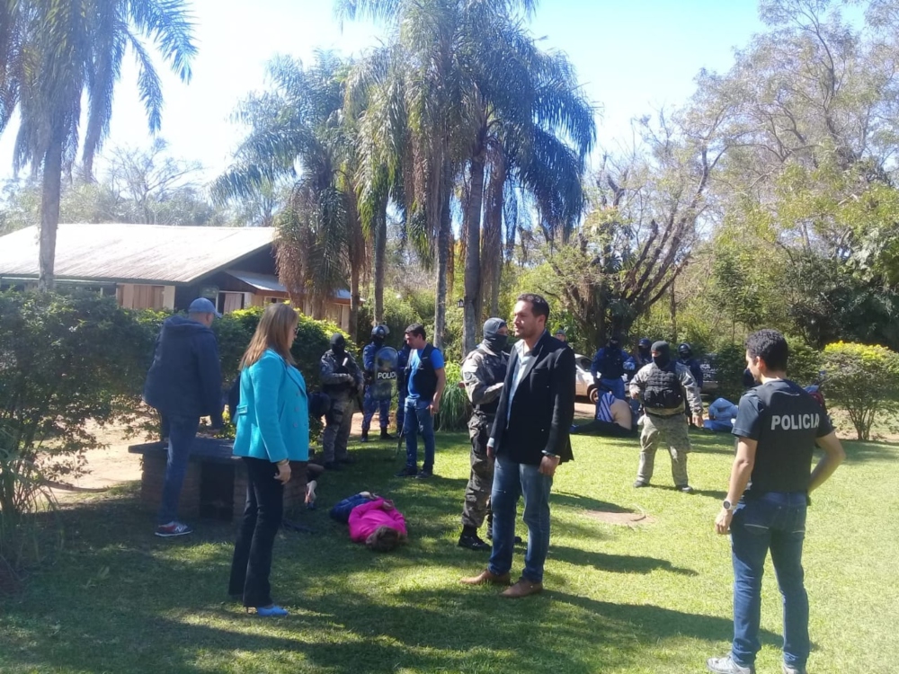 Es por eso y con orden del Dr. Carlos Giménez, el juez que interviene en la causa, se realizaron allanamientos simultáneos en dichas cabañas que permitieron la detención de Rojas, su esposa y tres sujetos oriundos de Entre Ríos. Estos últimos fueron identificados como Gabriel Salvador O. (49), Jorge Gustavo G. (28) y Adriana Vanesa A. (44) quienes arribaron al lugar en dos automóviles Fiat Siena color blanco, identificados como remises de la ciudad de Paraná (Entre Ríos).
