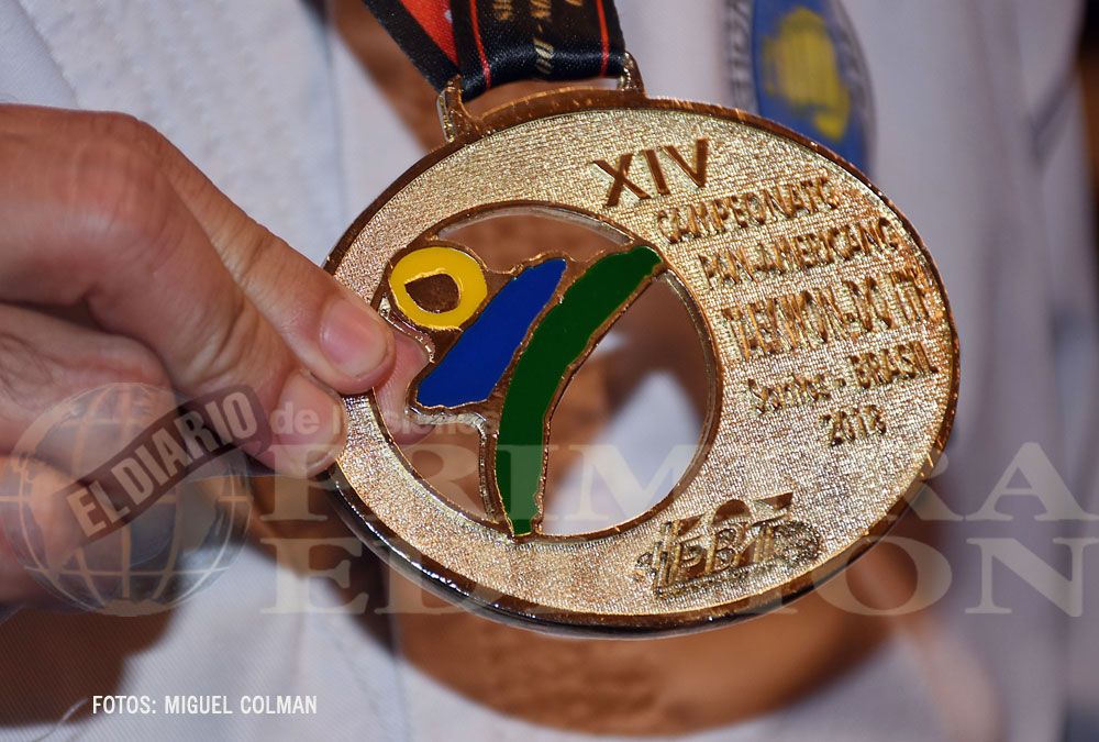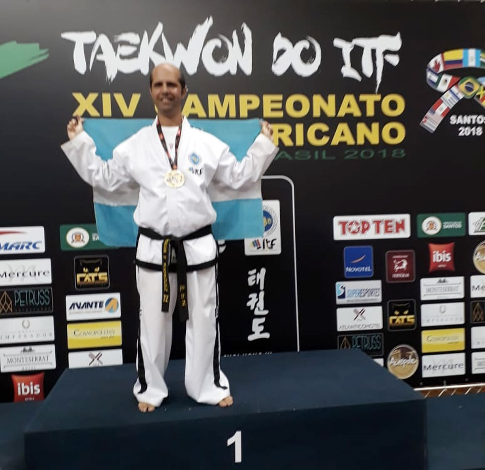 Esteban Federico Rodríguez Nanni (40) está orgulloso de la medalla de oro que cuelga de su pecho y estruja con fuerzas, casi sin darse cuenta. La obtuvo a mediados de mayo en el XIV Campeonato Panamericano de Taekwon Do (ITF), que reunió a más de 1.300 competidores de diferentes países en la ciudad brasileña de Santos. El posadeño, IV Dan, compitió en Formas en la categoría Especial. La experiencia y la concentración ayudaron a que subiera al podio del lujoso estadio Arena Santos. Desde la capital misionera viajaron 19 participantes, que también trajeron variados reconocimientos.