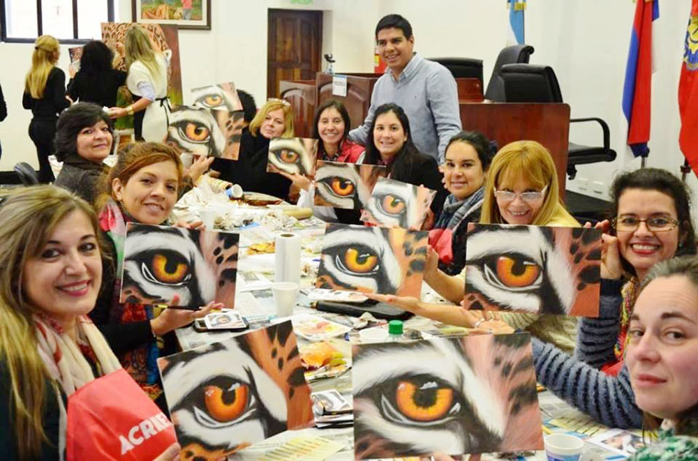 La propuesta tuvo un éxito rotundo. Algo mágico y maravilloso ocurrió en el recinto del Honorable Concejo Deliberante. La jornada se desarrolló desde varias propuestas en simultáneo. Primero y principal la convocatoria se dio bajo la consigna: El medio Ambiente está en tus manos, ofrecimos un Taller Gratuito de Pintura Hiperrealista. Trabajamos con óleos Acrilex, empresa que auspició este evento por considerarlo trascendental, le enseñamos a la gente cómo pintar un felino con técnica Hiperrealista.