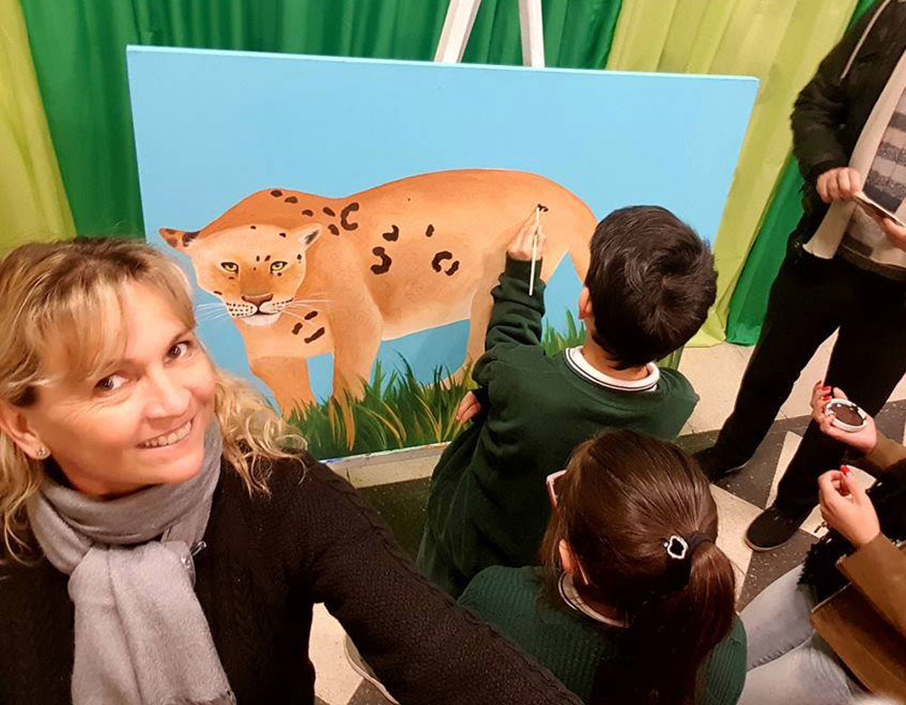 El Ministerio de Ecología se sumó al proyecto, el Señor Juan Manuel Díaz se apersonó en el recinto con su equipo de trabajo y con material audiovisual, sumando fuerzas con los integrantes de la Red Yaguareté, quienes en conjunto, recibieron a los niños de diferentes escuelas, dándoles charlas, enseñándoles sobre el yaguareté, y pidiéndoles a los niños que lo protejan, porque ellos son el futuro y explicándoles que de todos nosotros depende su supervivencia. Los niños demostraron gran entusiasmo, los recibía el mismísimo Yaguareté, imaginen la emoción de ellos al verlo, volvían con el compromiso asumido, las caritas pintadas, y además dejando su mancha en una obra en conjunto.