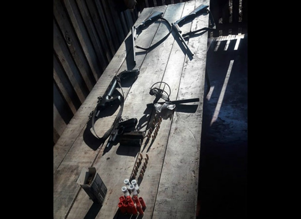 En el lugar secuestraron una pistola calibre 9 mm con números limados además dos cargadores y 24 cartuchos; un rifle tipo aire comprimido de 5 mm, con caño adaptado para calibre 22 mm; una escopeta de dos caños calibre 16 mm; una escopeta calibre 12 y otra calibre 14 mm; una escopeta recortada tipo pistolón calibre 14 mm con cachas.
