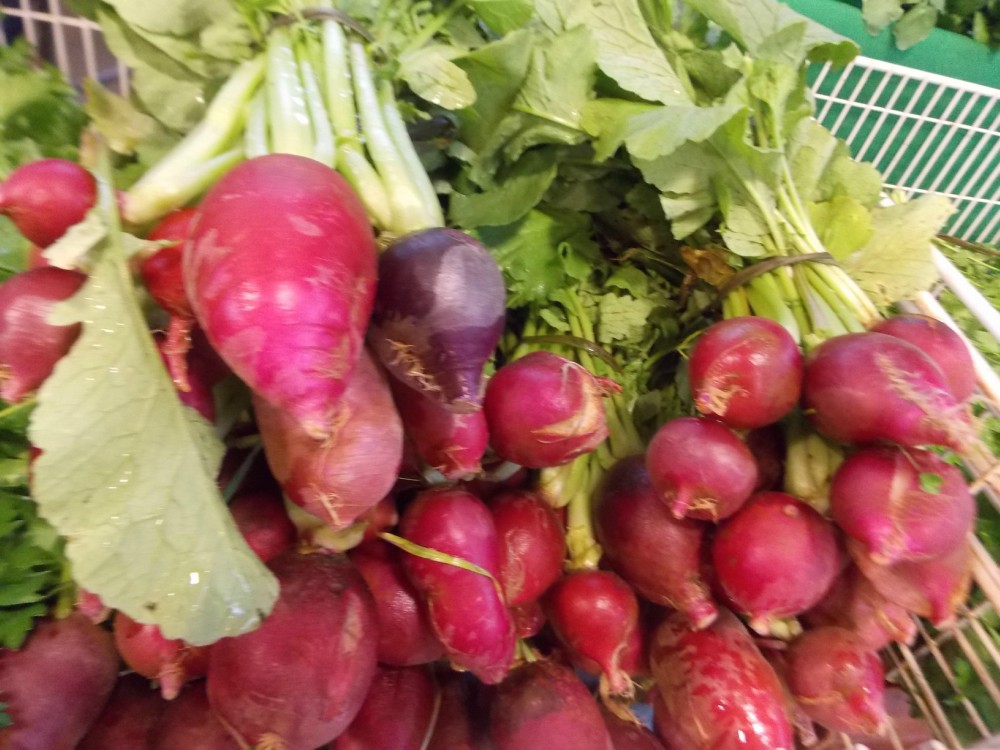 Box 26: 3 mazos de rabanito $25; 3 mazos de espinaca $25; 3 mazos de lechuga $25; 2 docenas de mandarina $40; naranja la docena $45.