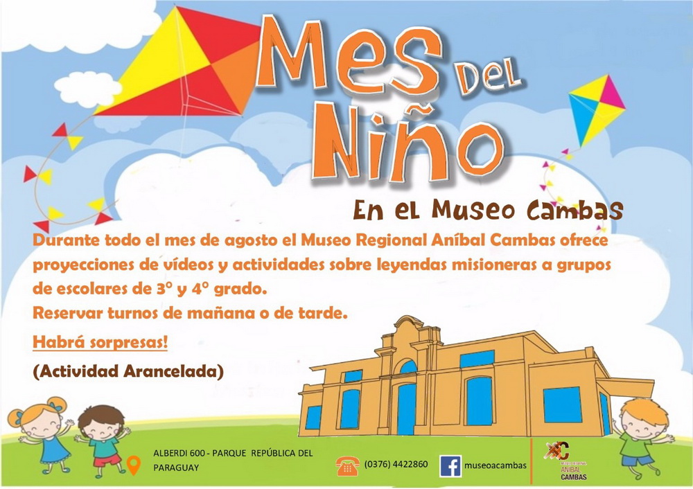 El Museo Cambas propone un excelente plan para celebrar el mes del Niño durante Agosto. Actividad destinada a alumnos de 3º y 4º grado de Posadas y de toda la provincia.