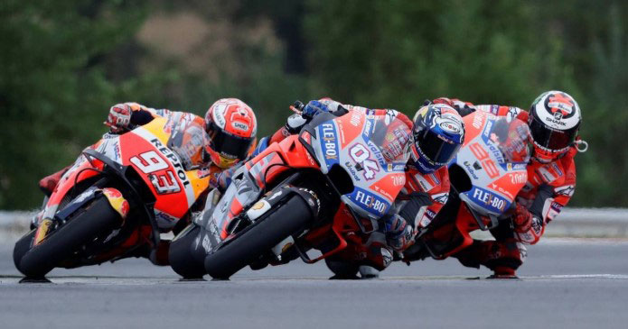 Ausente del Top 5 en las cinco últimas ediciones del Gran Premio de la República Checa, Dovizioso ocupó la cabeza de carrera durante la mayor parte de la prueba, al principio formando tándem con el italiano Valentino Rossi (Yamaha).