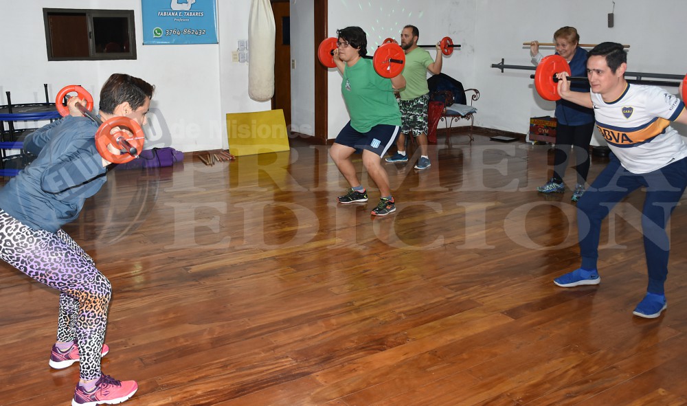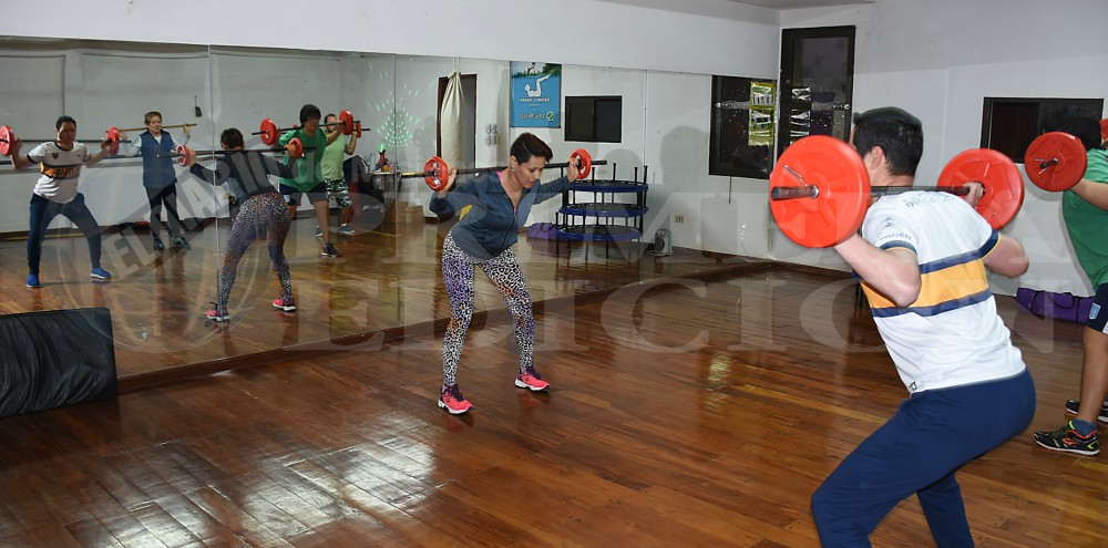 Durante la clase, cada uno tiene sus elementos y los va cambiando a medida que se realiza un nuevo ejercicio. “Algunas veces nos desplazamos pero corresponde más a un cambio de rutina para buscar siempre la variabilidad dentro del ejercicio localizado”, señaló la “profe”. La clase se inicia con una entrada en calor con un mínimo peso y luego comienza el trabajo más fuerte en localizada para terminar con los últimos 15 minutos donde se realizan exclusivamente abdominales.