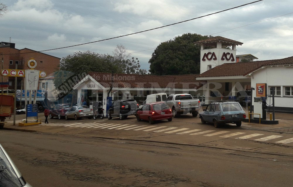 Calles cortadas, dobles filas, lugares de estacionamientos tapados, sendas peatonales interrumpidas  son complicaciones diarias derivadas de las largas filas de automóviles que esperan a cargar combustible en las estaciones de servicio de Oberá.