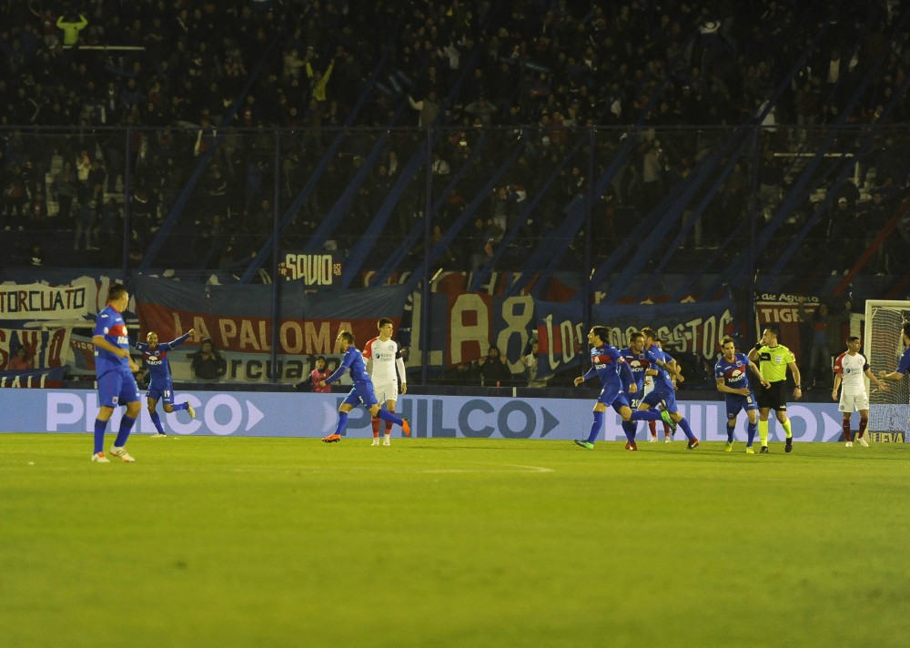 Aprovechando los innumerables desacoples defensivos azulgranas, el dueño de casa se colocó en ventaja tras una hermosa volea de Menossi entrando al área (tras pararla con el muslo) que dejó sin chances a Navarro, quien ni siquiera tuvo tiempo de volar sobre su ángulo superior derecho debido a la violencia y colocación del disparo.