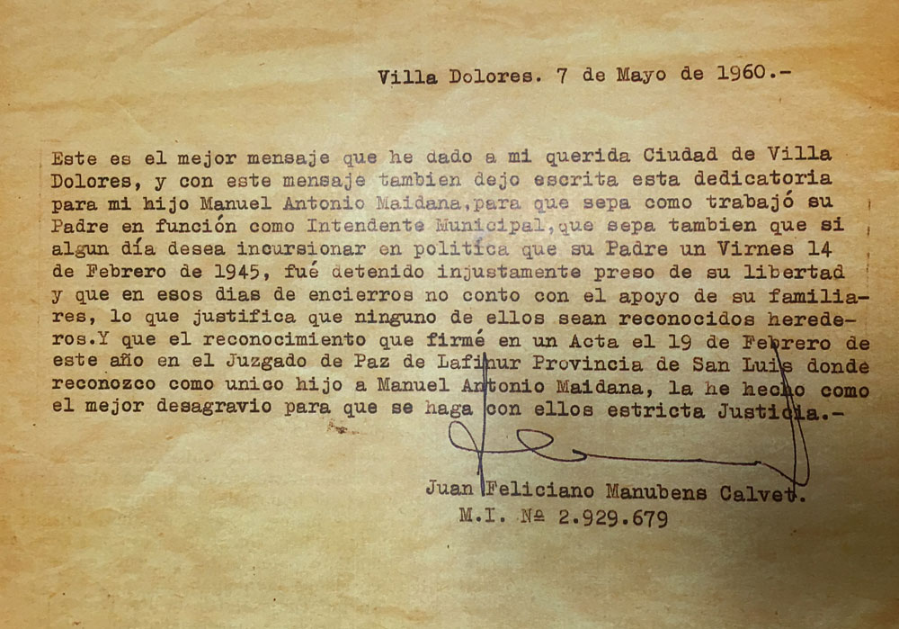 Un primo ya le había adelantado pero, además, tenía en su poder una tirilla del Registro Civil, que es la que entregan mientras se tramita el DNI. “Me la dio mi mamá para salir de los Esteros y para viajar a Corrientes. Detrás estaba el nombre de Juan Feliciano Manubens Calvet, en letra manuscrita, redondeada aunque ya casi ilegible, que aún conservo”, manifestó.