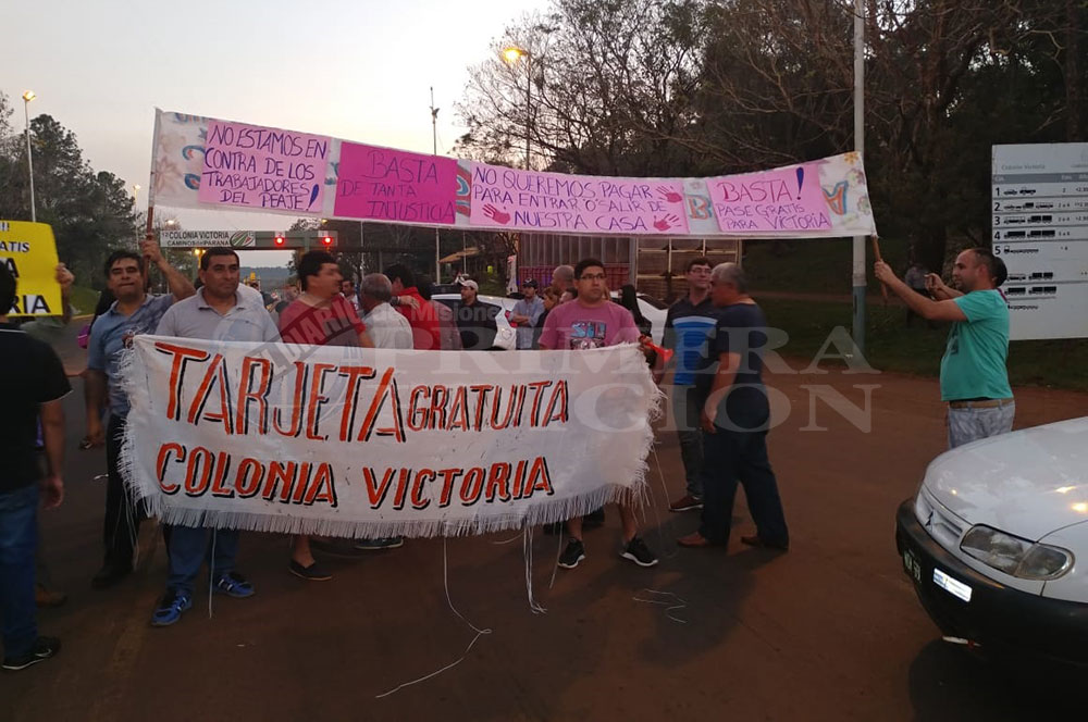 Vecinos de Colonia Victoria y Eldorado retomaron esta tarde las manifestaciones con corte de ruta en inmediaciones a la casilla del peaje por la ruta nacional 12 por tiempo indeterminado.