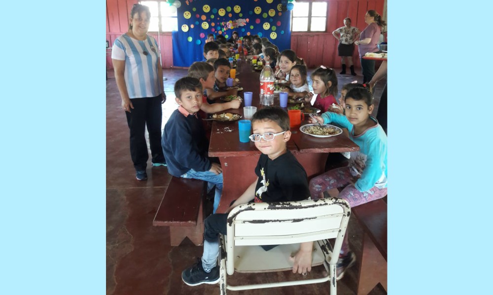 Los alumnos de la Escuela 758 del Paraje Lechuza, en la localidad de El Soberbio, festejaron este viernes el Día del Niño. Con el sol a pleno, y rodeados de naturaleza, los pequeños compartieron diferentes juegos y un riquísimo almuerzo (gallinada, acompañada con ensalada de lechuga y mandioca) preparado por las docentes Mónica Da Luz, Rosa Jacobs y Marcia Schwingel, y el Club de Madres, en una una demostración de compromiso con la educación que va mucho más allá del aula, que trasciende los cuadernos, que se mete en el alma de cada niño.