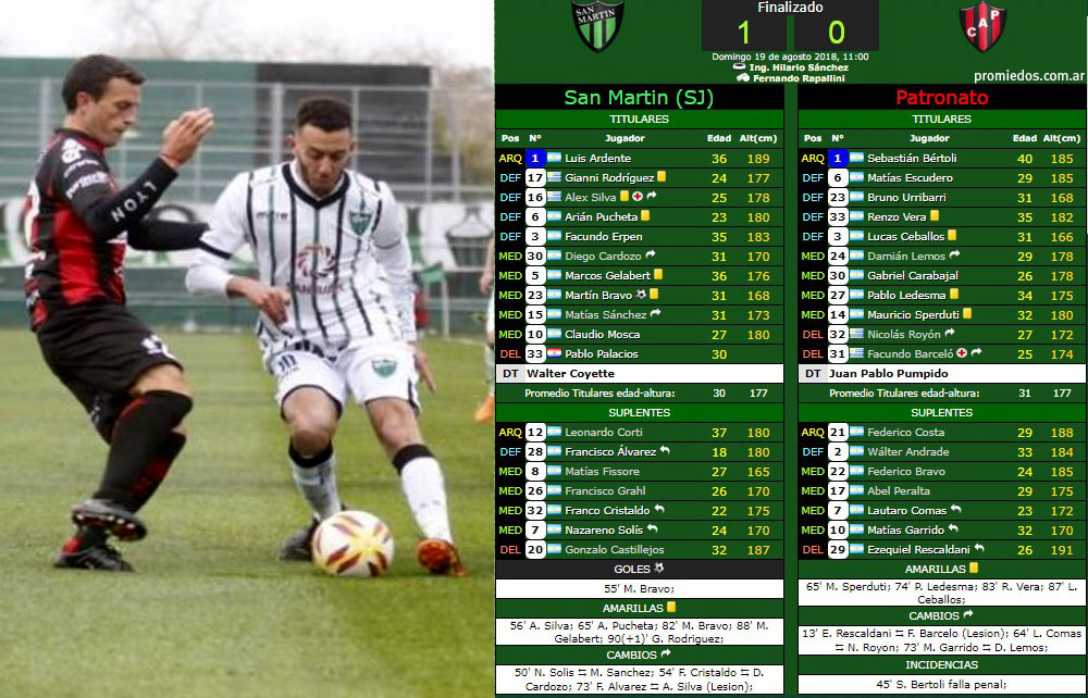 El conjunto sanjuanino salió decidido a quedarse con los tres puntos y a los 6 minutos Ardente evitó la caída de su valla al taparle un remate a Mauricio Sperdutti sobre su palo izquierdo lo que le dio aire a San Martín.