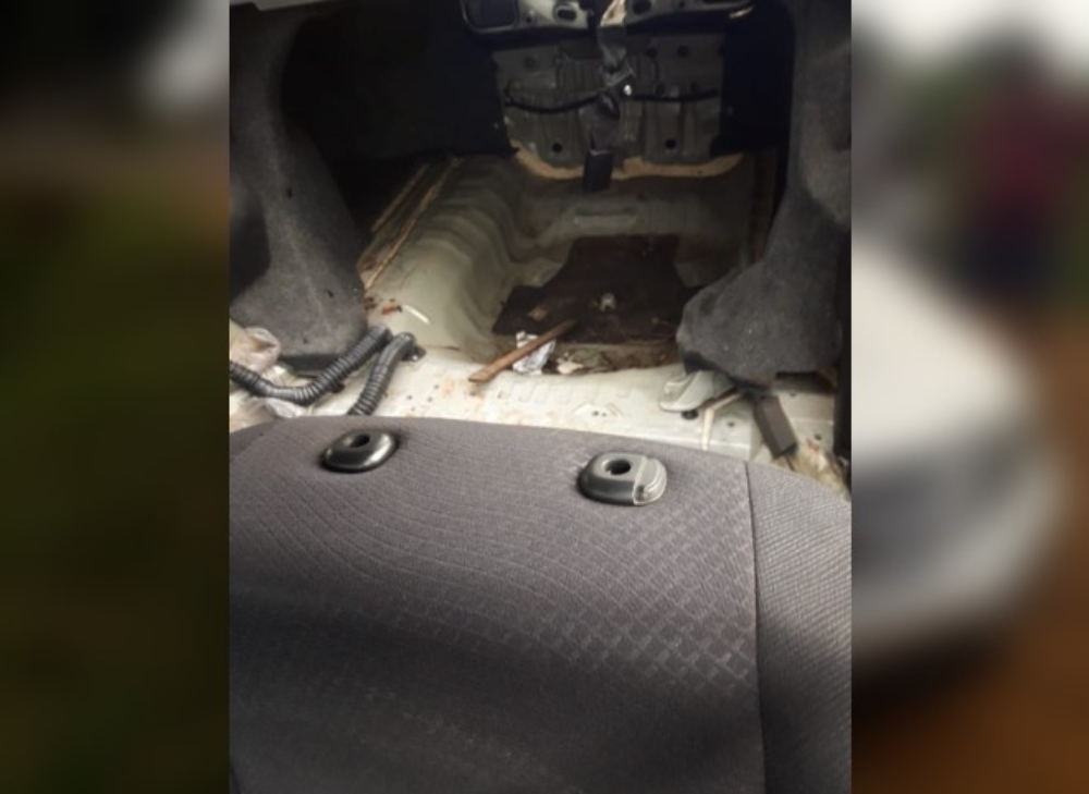Los investigadores observaron que en el interior del rodado faltan los asientos traseros y hay un precario sistema de recarga directa al tanque de combustible.