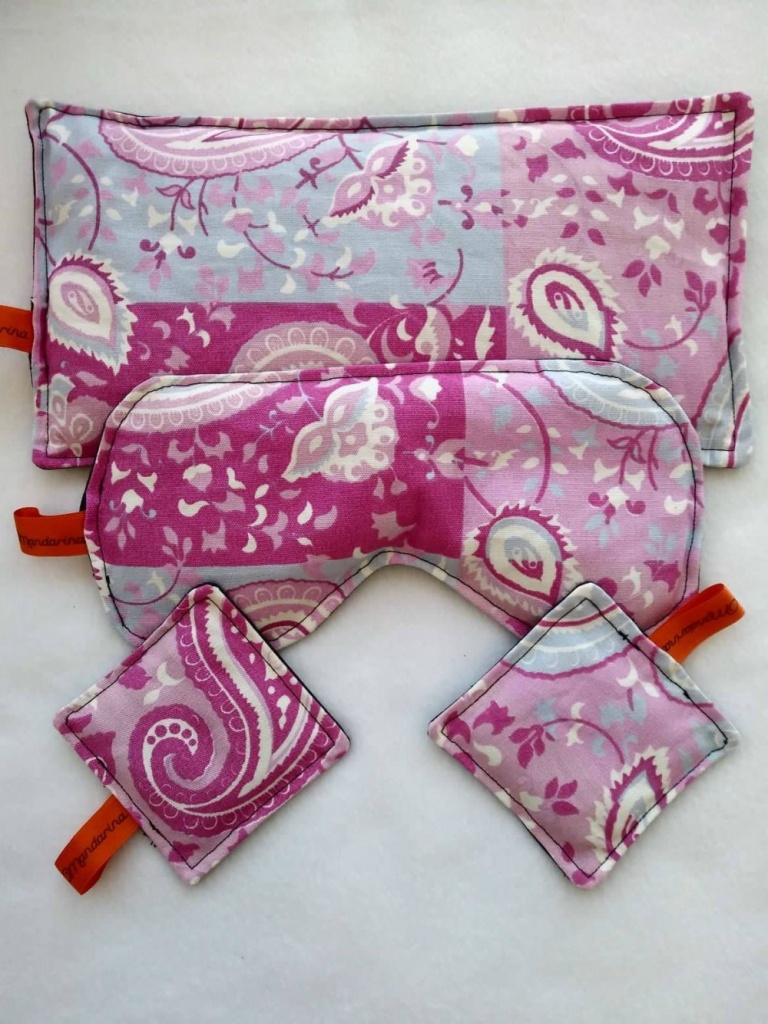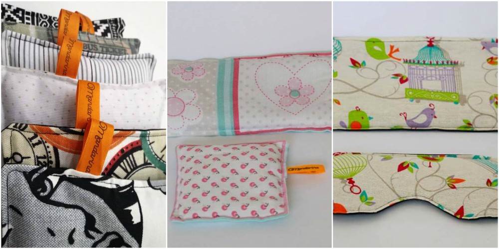 Ambas confeccionan tres medidas de almohadillas, una pequeña para calentar las manos y tenerlas en el bolsillo. Otra es la antifaz y una tercera para cervicales. También hay una línea para bebés que alivian los cólicos o si van frías alivian golpes y otras dolencias. Mientras, continúan las creaciones.