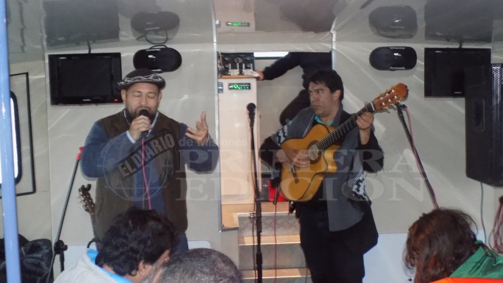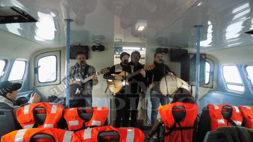 Pero dentro de la embarcación, el clima era distinto con la presencia de la “La Guitarreada” que presentó un repertorio cargado de zambas y chacareras, que rápidamente se ganaron los aplausos de los presentes, en un ambiente cargado de amistad y confraternidad.