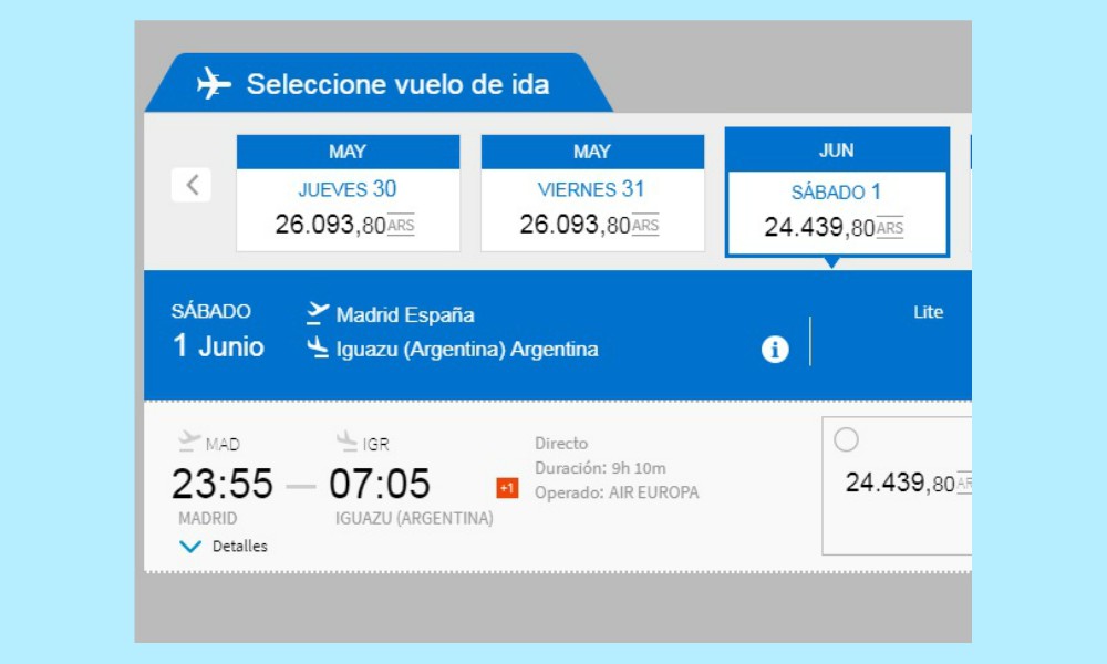 El delegado de la empresa en América latina, Diego García, especificó que se podrá viajar de Madrid a Puerto Iguazú (y viceversa) en apenas 9 horas y 10 minutos, en el avión más lujoso de su flota, a partir de 746 euros en una primera etapa promocional.
