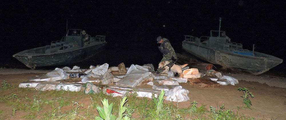 El cruce del navío se realizó a la altura del kilómetro 1.756 del río Paraná, en el Parque Nacional Mil Hectáreas, una zona selvática con mucha vegetación y de difícil acceso. El personal de la Prefectura Naval notificó la situación y pidió refuerzos. Inmediatamente se desplegaron efectivos por agua y tierra para llegar hasta el lugar, con la compañía de Marys, una perra entrenada para detectar narcóticos.