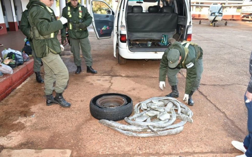 Al realizar una requisa profunda, los gendarmes descubrieron que en la rueda de auxilio ocultaban diez kilos de marihuana, divididos en 27 “ladrillos”. Se cree que fueron acondicionados en la gomería posadeña.
