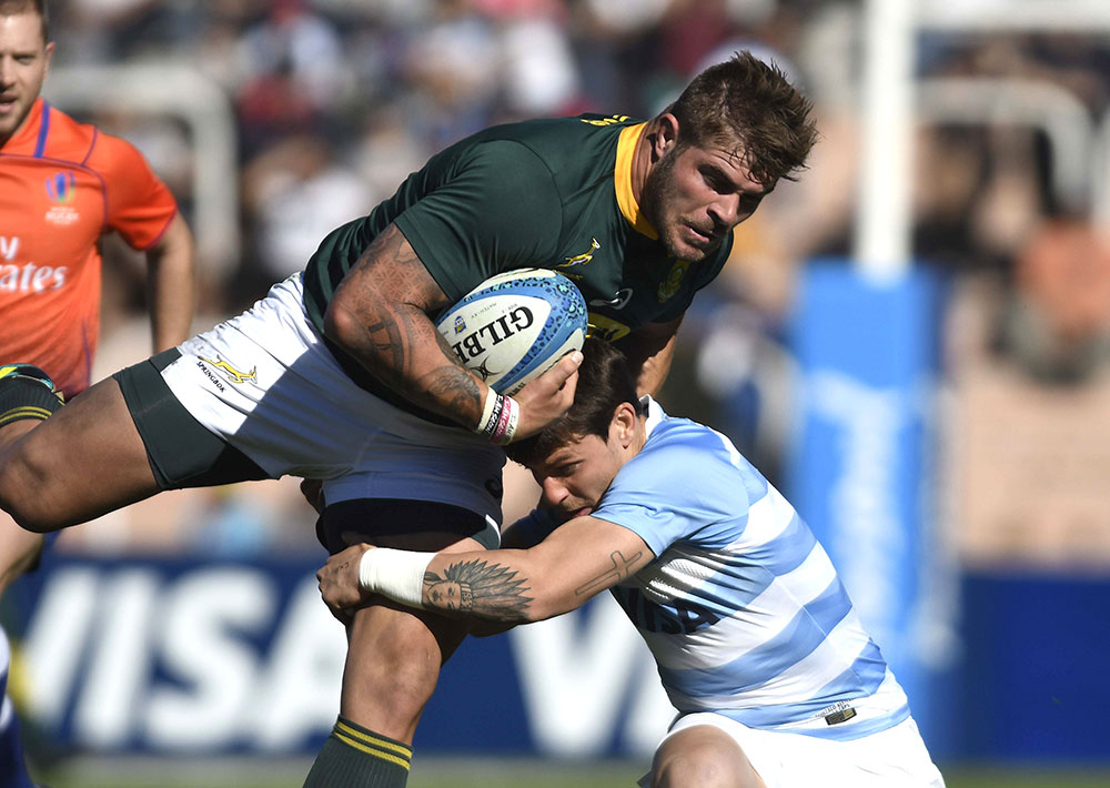 Sin embargo, una pifia en un tackle de Sánchez sobre Kolisi y el ala se fue derecho al ingoal para marcar el primer try, que fue ratificado por la conversión de Pollard.
