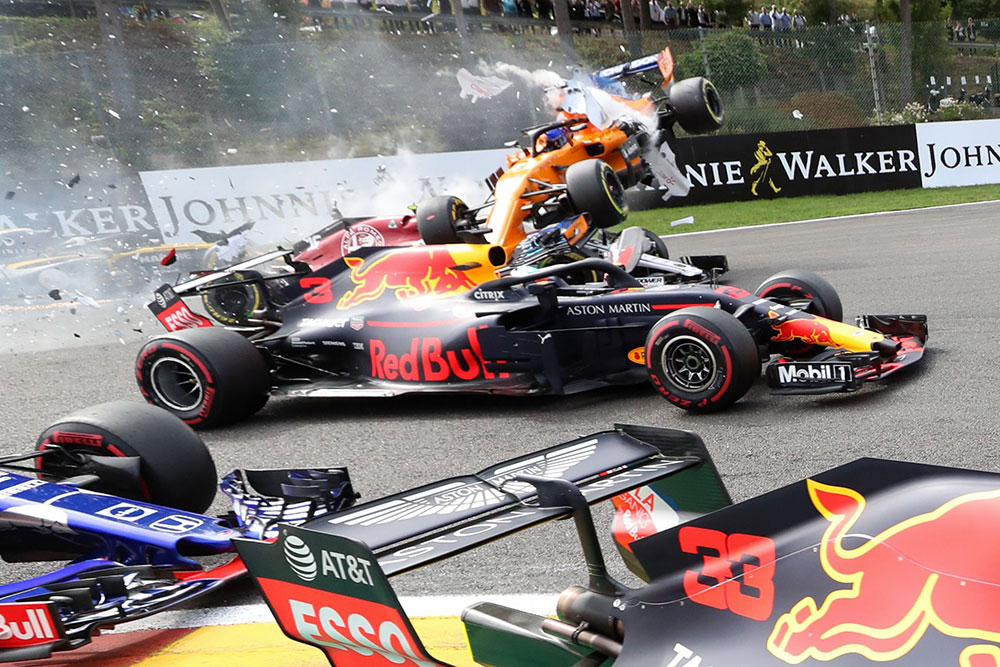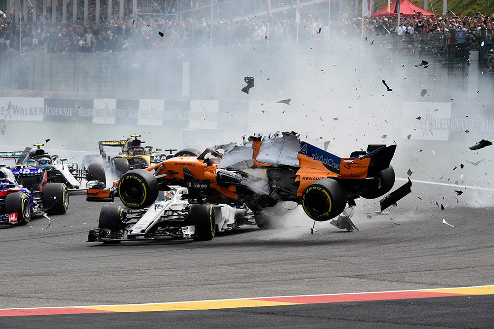 El piloto asturiano, que disputa con McLaren su última temporada en F1, abandonó al chocar con el alemán de Renault Niko Hulkenberg en la primera curva del circuito de Spa.