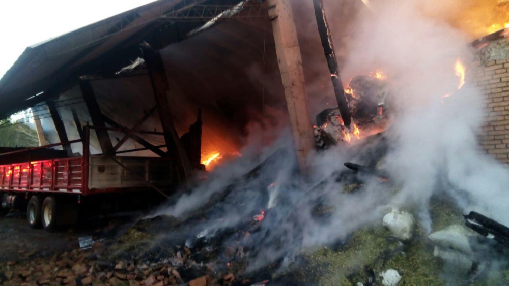 Todavía se desconocen las causas del incendio que ya provocó el desmoronamiento de gran parte de la estructura del aserrado ubicado en Ruta 14, km 21, entre Oberá y Campo Viera.