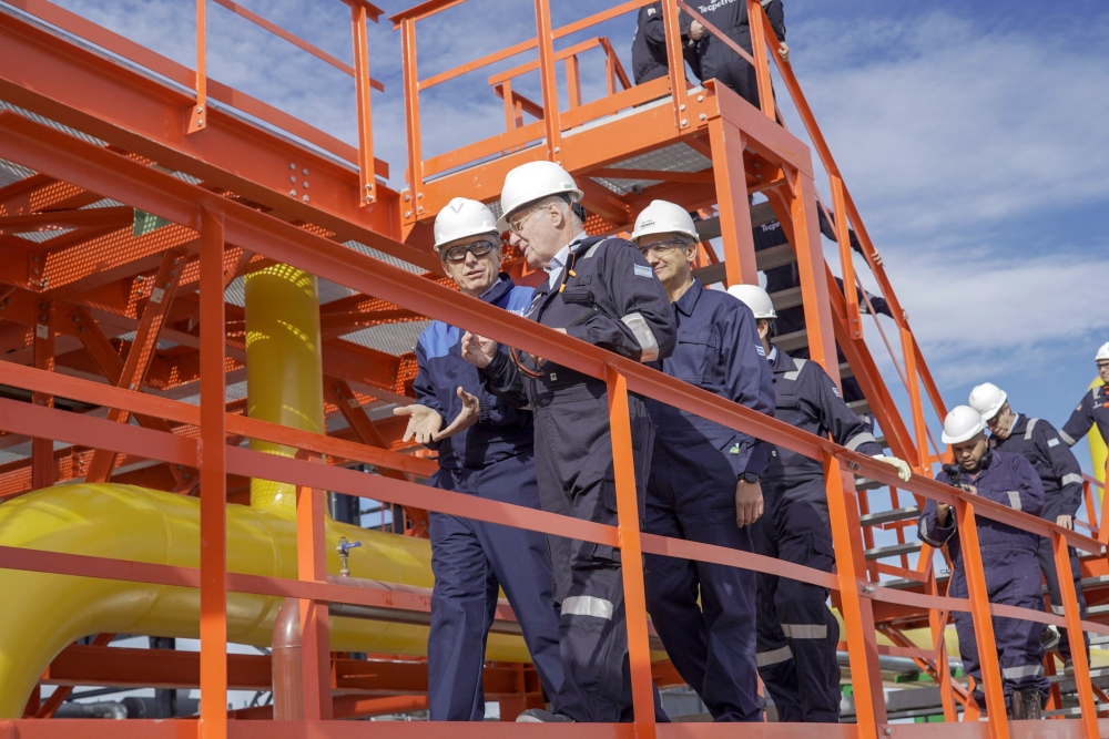 Macri recorrió hoy la Planta Central de Procesamiento de Gas de la empresa Tecpetrol. Foto NA