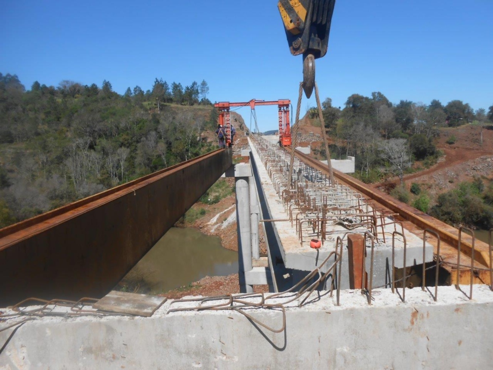 Las vigas fueron fabricadas en la zona de obra y están siendo ubicadas en su posición definitiva, apoyadas sobre los estribos y pilas intermedias mediante un sistema de “lanzamiento”.