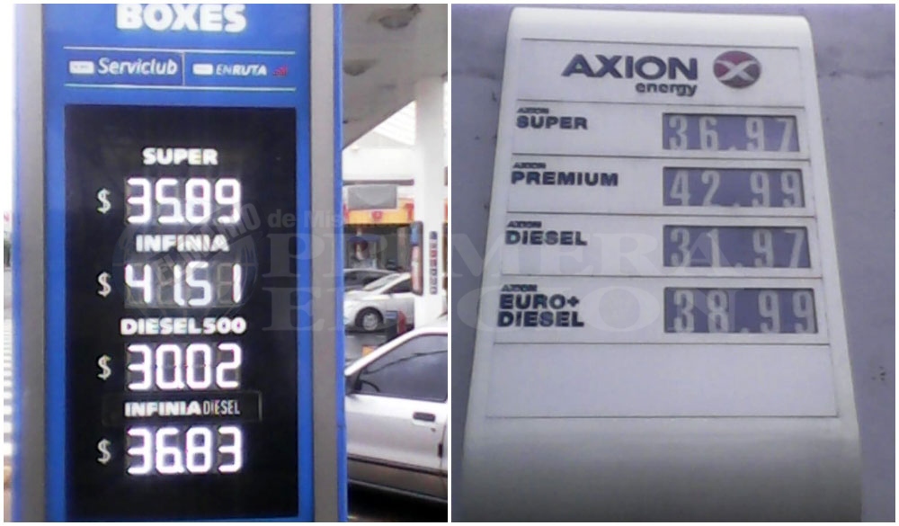 En Axion, la Premium cuesta $42,99, y Súper $36,97. Mientras que Diesel común 31,97 y Euro Diesel $38,99.