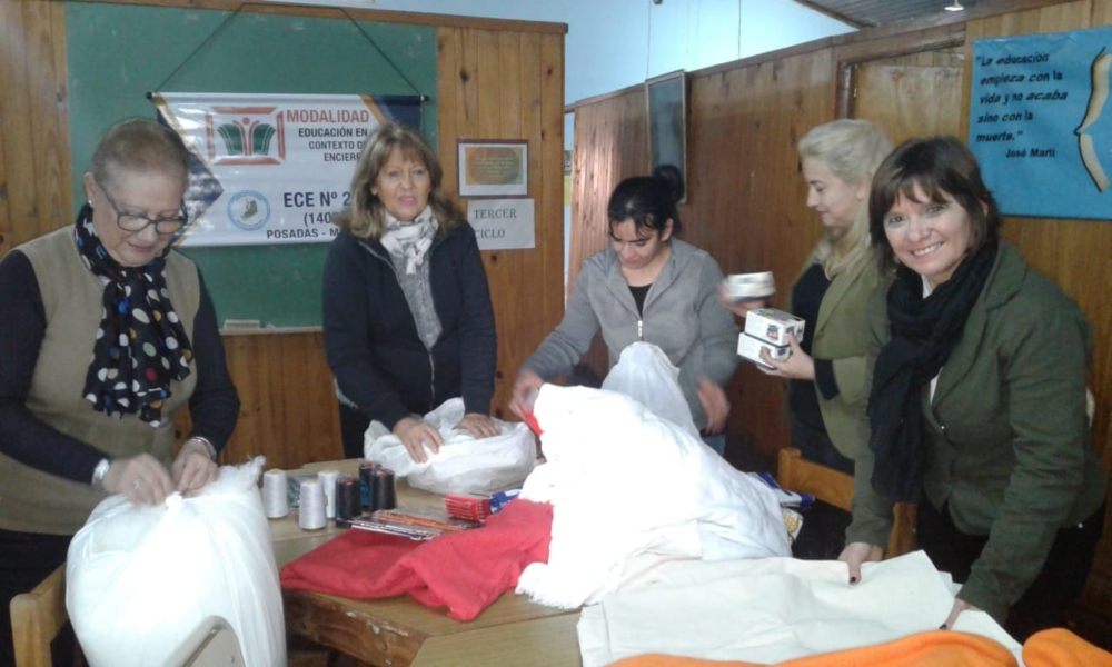 En esta ocasión entregaron varios elementos y muletas y andadores a la Asociación Civil “Voluntades”; también donaron a la Escuela en Contexto de Encierro 25 materiales como telas para manteles, caminos de mesas, telas de toallas, agujas, hilos, tijeras, pinceles, pintura para telas y para madera.