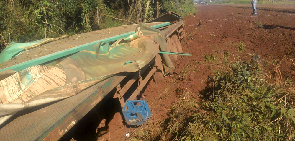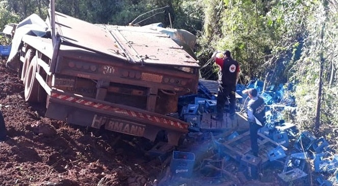 El camión perteneciente a una firma comercial de Andresito llevaba una carga de cervezas.