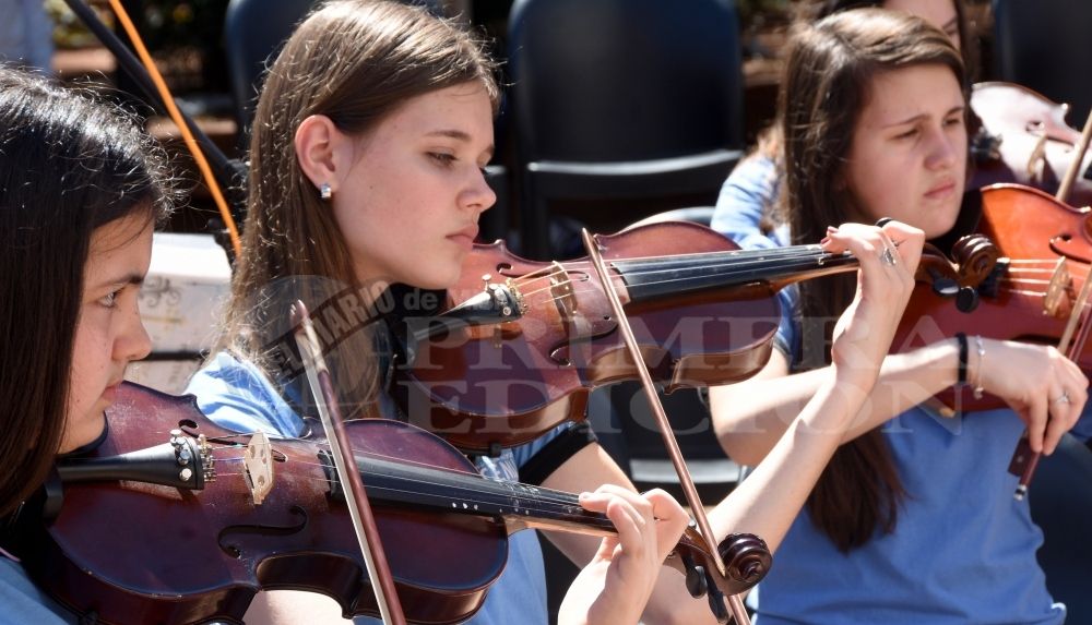 Desde esta mañana las orquestas brindan un espectáculo único en la Plaza 9 de Julio en simultáneo en el Instituto Montoya, hasta las 18.30.