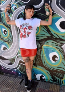 Al comienzo el soporte de sus ideas fue el papel, pero con los años se animó a pintar cuadros, murales e incluso remeras y zapatillas. Ella pinta y dibuja mucho, todo el tiempo y lo hace sobre “todo lo que pueda funcionar como medio de expresión”.