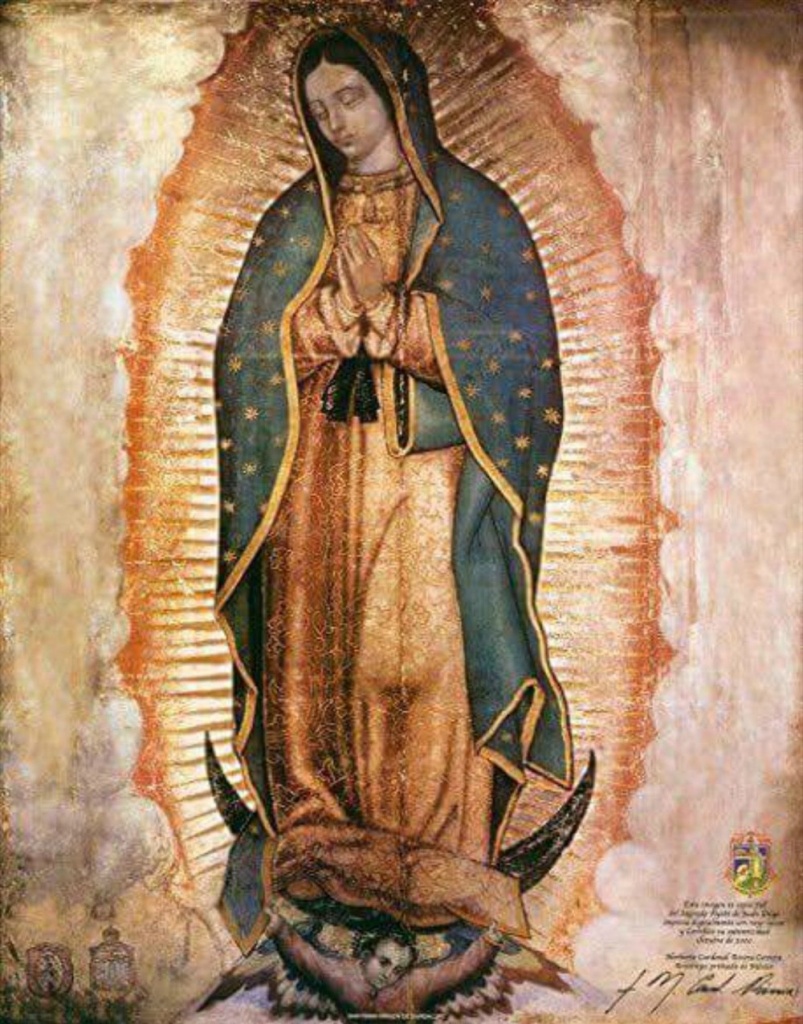 Fue allí que me dije, como quien hubiera descubierto América: ¡Pero claro! ¡La tilma fue estampada por Ella misma! (tilma es el nombre del delantal que usaba Juan Diego en donde llevaba las rosas que se le cayeron frente al obispo, quedando estampada en él, en ese momento, la imagen de la Virgen de Guadalupe).