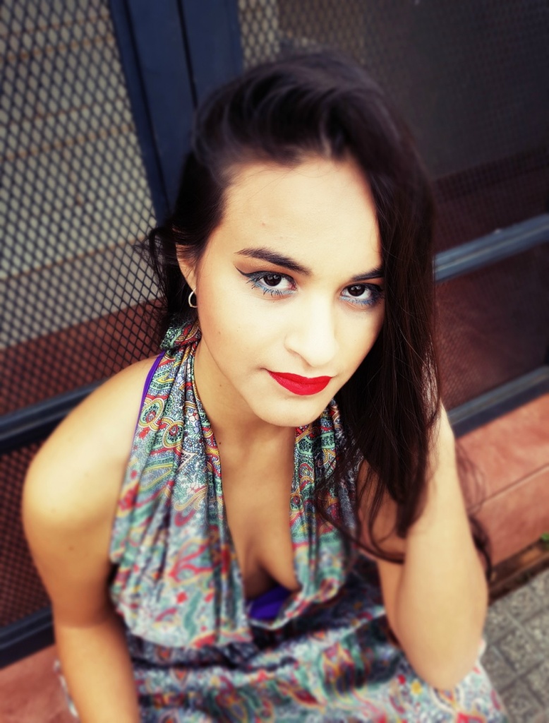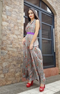 En las fotos de hoy, les quise mostrar por ejemplo que Nahir –nuestra modelo- luce un vestido donde en la espalda prácticamente no hay nada de textil y en la parte delantera un escote que llega directo a la cintura. El canesú en la parte delantera tiene un plisado descontracturado e incluso hasta conserva casi el mismo ancho en la parte del bretel, eso permite a su vez que ella pueda sentirse más segura al caminar, bailar, posar y le genera una actitud positiva en su porte, en su postura, es “ella” luciendo el vestido y no al revés.