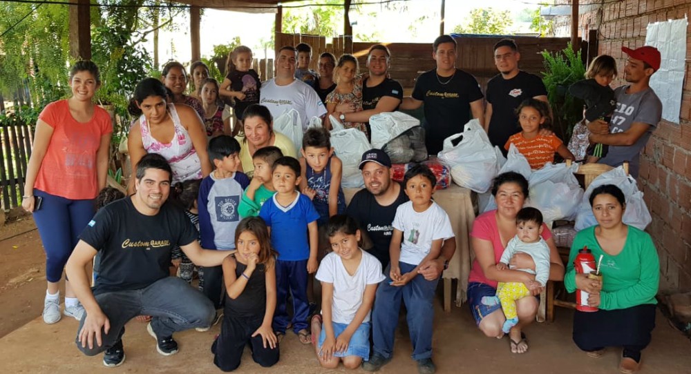 Unos 30 niños y niñas que asisten a la organización barrial “Mamá María”, que brinda ayuda alimentaria, recibieron este fin de semana a los integrantes del grupo Custom Garage Argentina, organizadores del Posadas Tour.