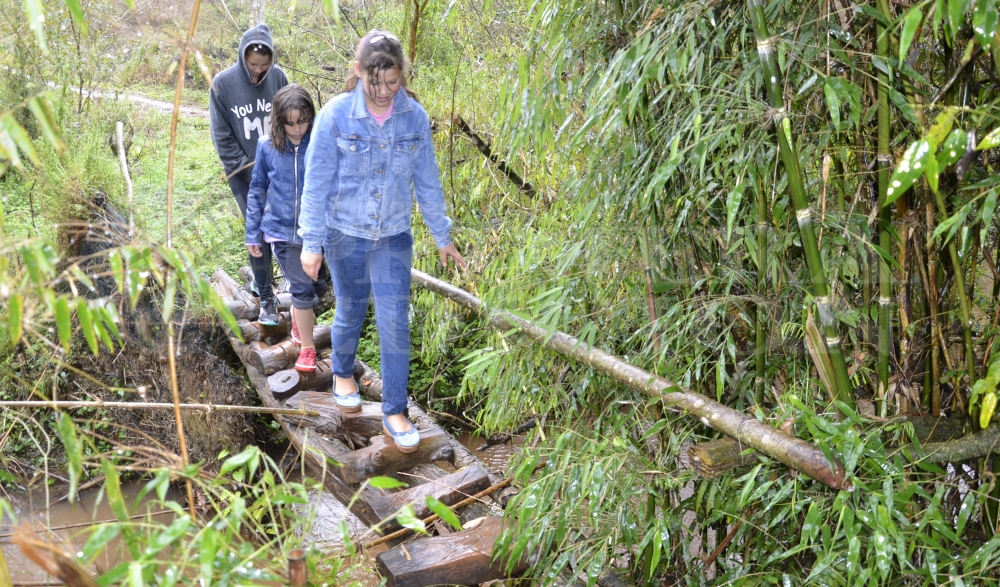 José Bueno y su esposa Luisa tienen cuatro hijos y viven entre los dos arroyos. Según contó, si sus hijos usaran la pasarela que construyó recientemente la Municipalidad de San Vicente en un extremo del paraje donde también viven muchas familias, tendrían que caminar diez kilómetros para llegar a la escuela en vez de los tres que hacen cuando optan por cruzar por la pinguela de troncos que armaron sus padres.