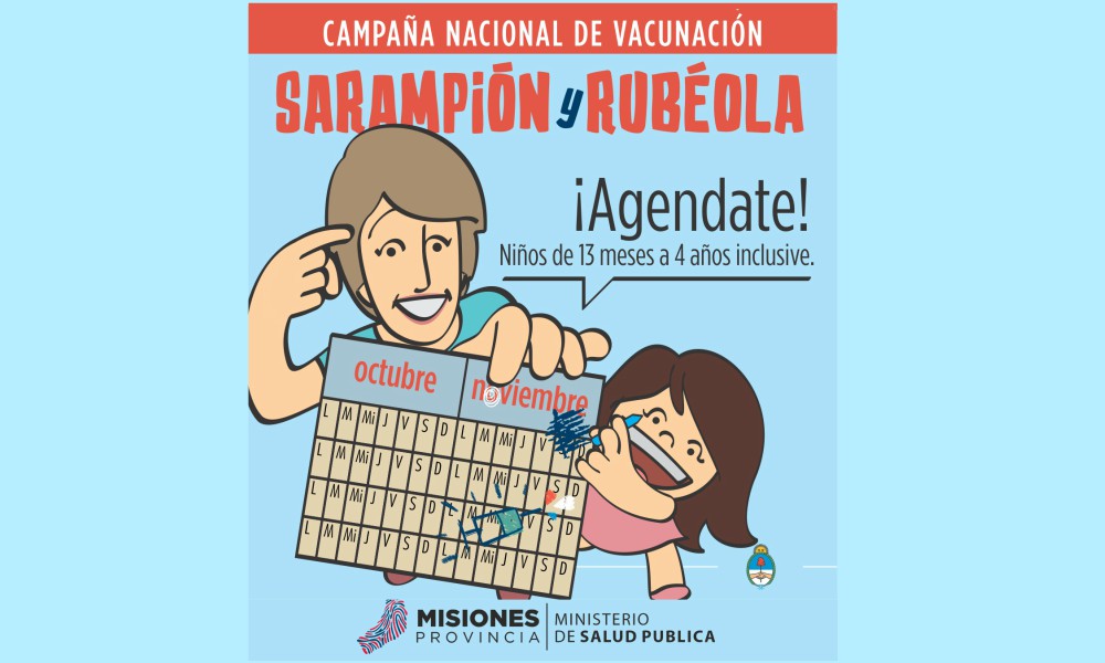 Del 1 de octubre al 30 de noviembre en todos los Centros de Atención Primaria de la Salud (CAPS) y hospitales de Misiones se llevará adelante la Campaña Nacional de Vacunación contra el sarampión y la rubeola, dirigida a niños y niñas de 13 meses a 4 años inclusive, que deberán recibir una dosis adicional de la vacuna triple viral. En Misiones la población objetiva es de 103.192 niños.