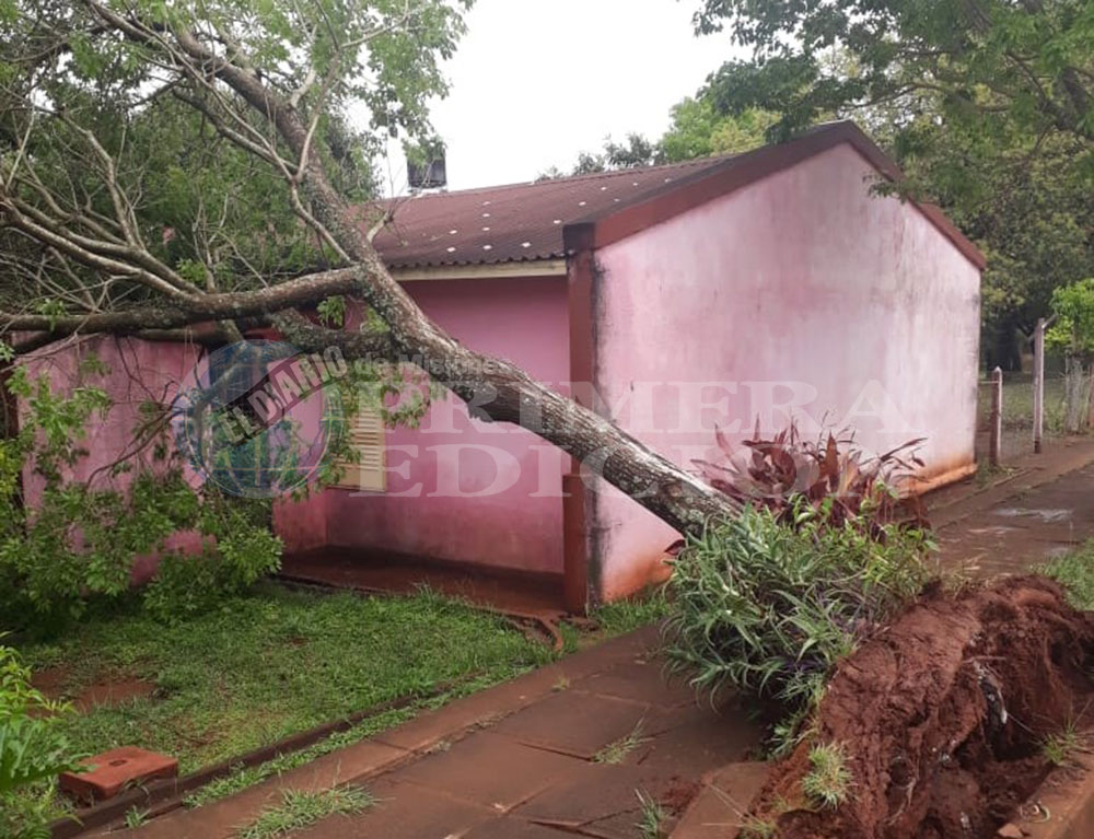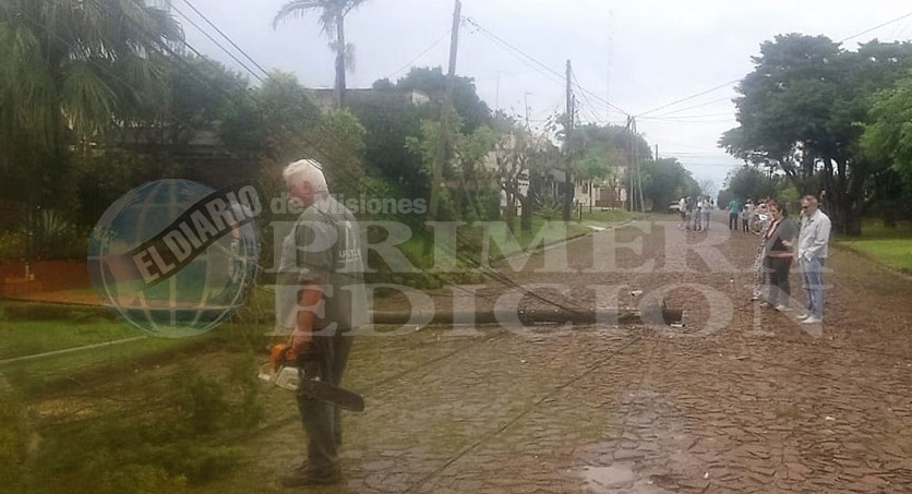 La tormenta de lluvia y viento que se abatió sobre Apóstoles durante la madrugada produjo la caída de árboles y postes de telefonía en los barrios Las Ruinas, 25 de Mayo y Centro.